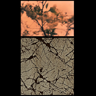 Visual and conceptual links between art and science, nature and technology are the basis of these works. Images of extreme accuracy are joined with those that are flawed or imprecise. M.R.I scans share space with snapshots from a disposable camera. A photomicrograph of a section of the reticular formation of the brain is echoed in the blurred photo of the branches of a cherry tree. Reflected is the tenuous nature of information transmission, whether neuronal connections in the brain or global networks across time and space.